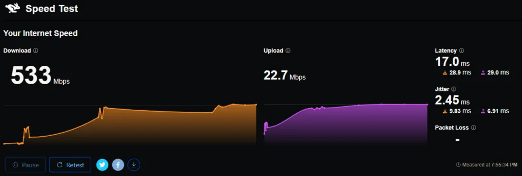 Internet connection at the time of these tests: