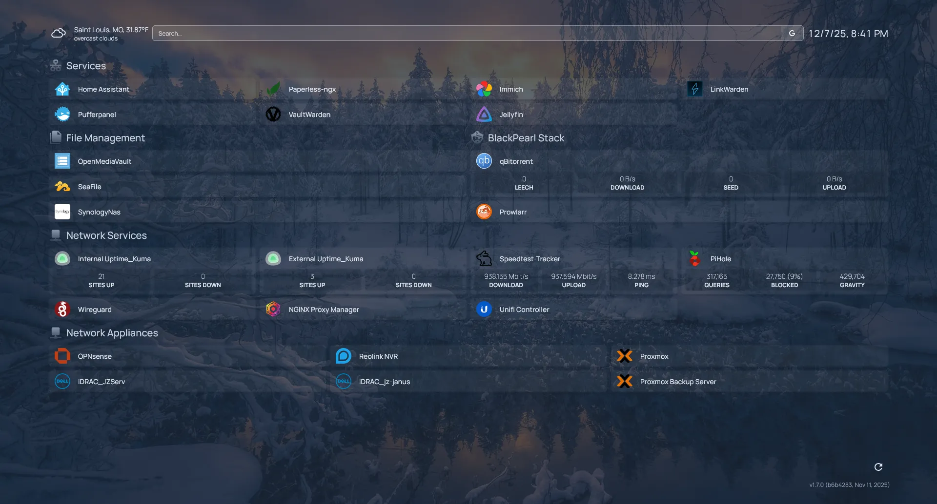Okay, fine. Vaultwarden, Home Assistant, and Homepage all take the top spot for most used. Homepage is a simplistic .yaml based “dashboard” for all of your services, allowing for widgets and customization, there isn’t a ton that you can’t do. It allows for a quick jump into any of my services, my network appliances, and anything else I feel like including.