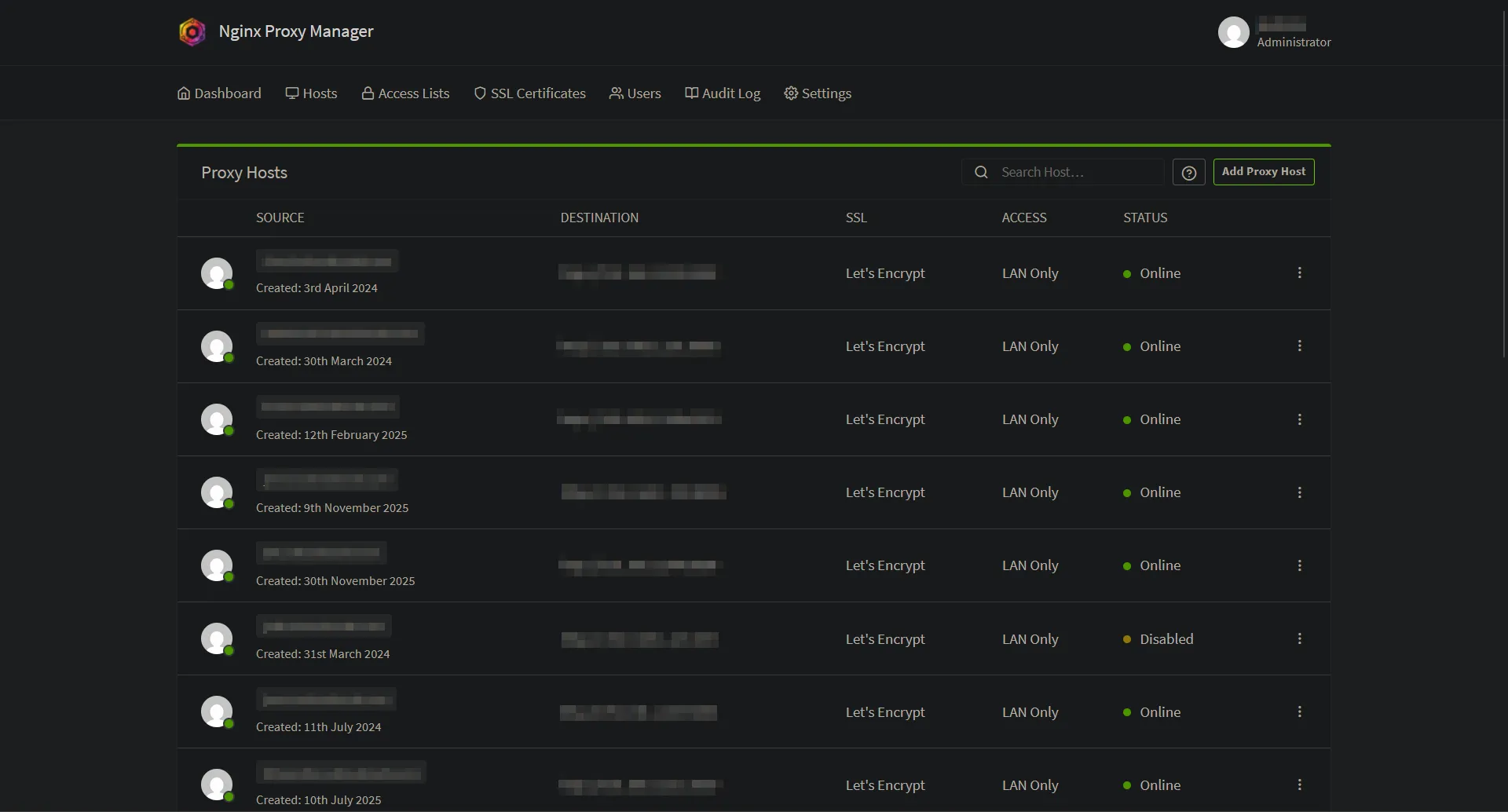 As my homelab and stack evolved, I began using the local DNS to route requests to my Nginx Proxy Manager server. Now all of my stuff is behind a pretty green 🔒 and has a nice domain to go along with it.